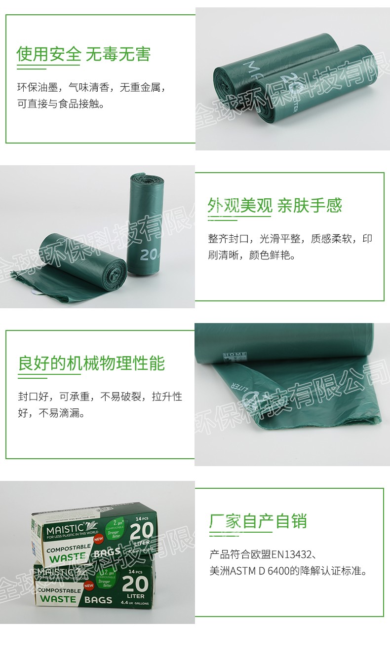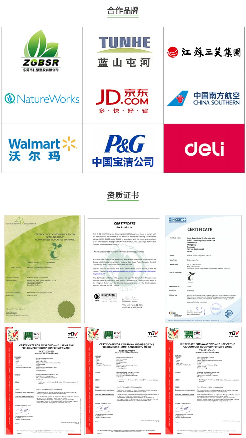廠家自產(chǎn)自銷:產(chǎn)品符合歐盟EN13432、美洲ASTM D 6400的降解認(rèn)證標(biāo)準(zhǔn)。