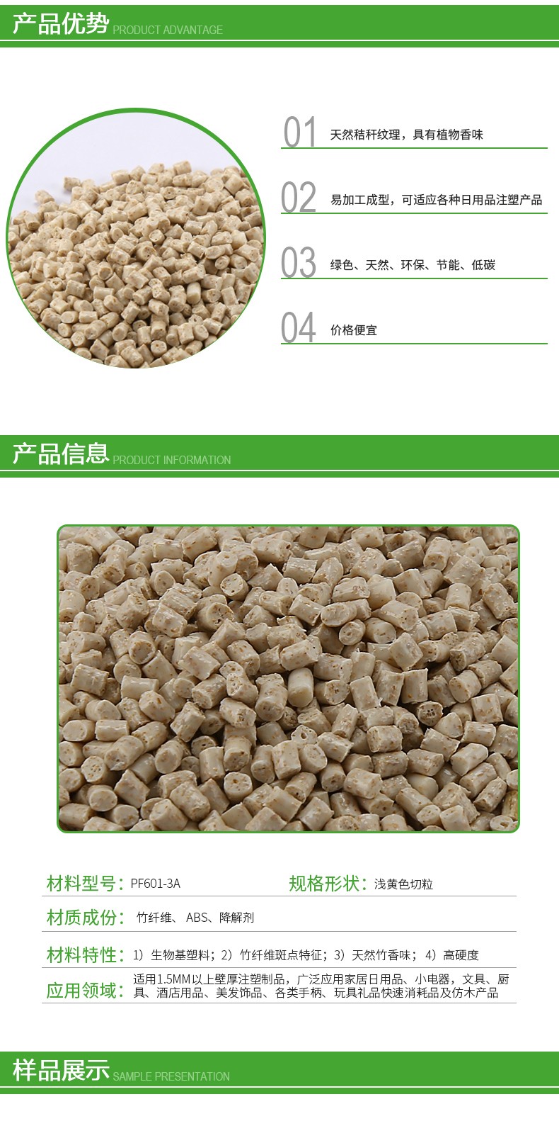 竹纖維復(fù)合材料PF601-3A的產(chǎn)品信息: